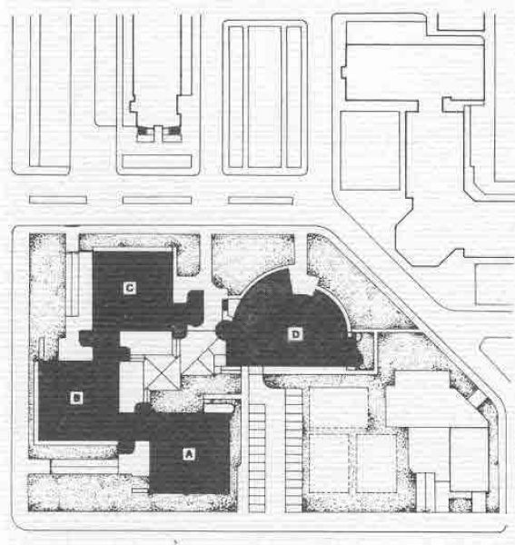 I Dipartimenti di Ricerca sono rappresentati da tre torri in prefabbricato.