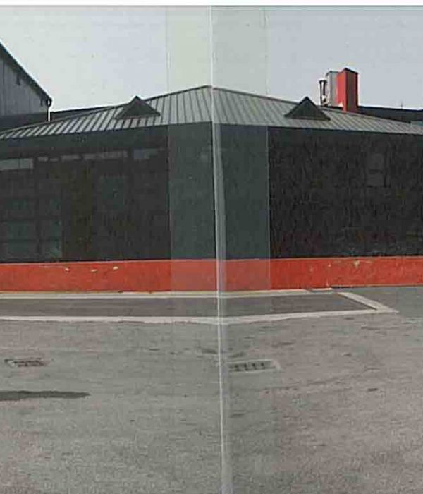 I due pensieri di rilievo sono le tende in vetro opaline bianco ed il pavimento in linoleum con fili di ottone che tracciano segni grafici in piena libertá.