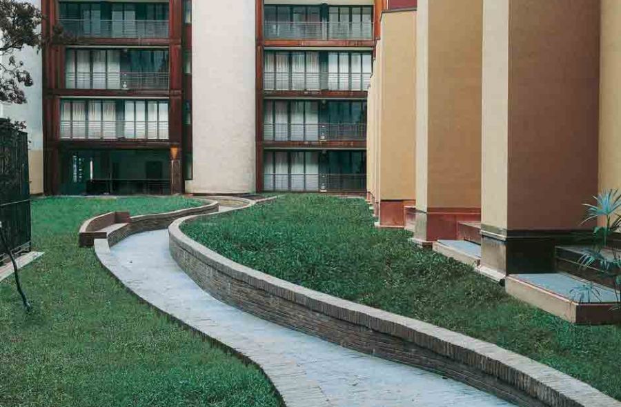 Particolare cura sulle facciate interne (normalmente di “serie B”) che prospettano sullo spazio di collegamento all’interno dell’area interessata.