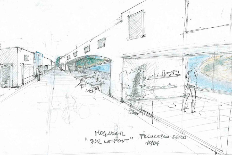 Proposta di intervento sul ponte alla foce del fiume- Come un “Ponte vecchio”, lascia libera la costa da edificazioni speculative.