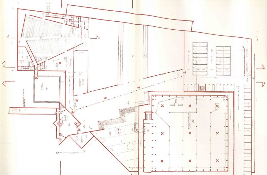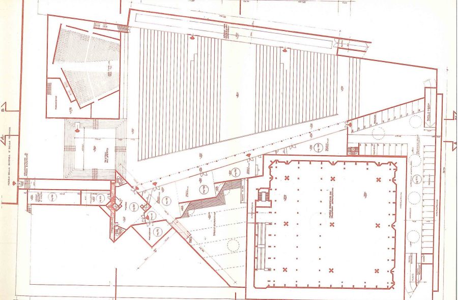 Sotto la piazza si sviluppano le grandi sezioni con accesso dalla grande scalinata.
