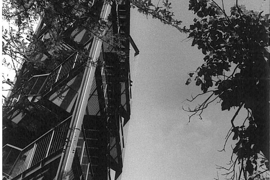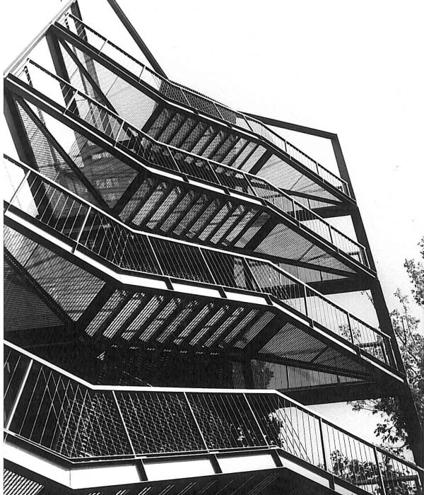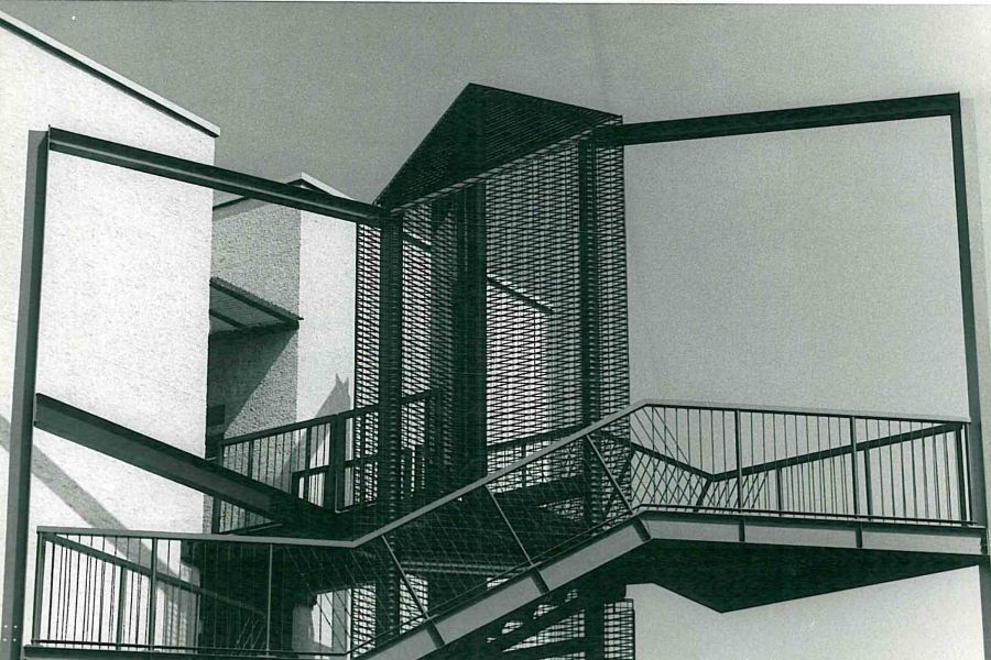 Innesto di corpi scale metallici all’esterno degli edifici dell’Arch. Moretti.