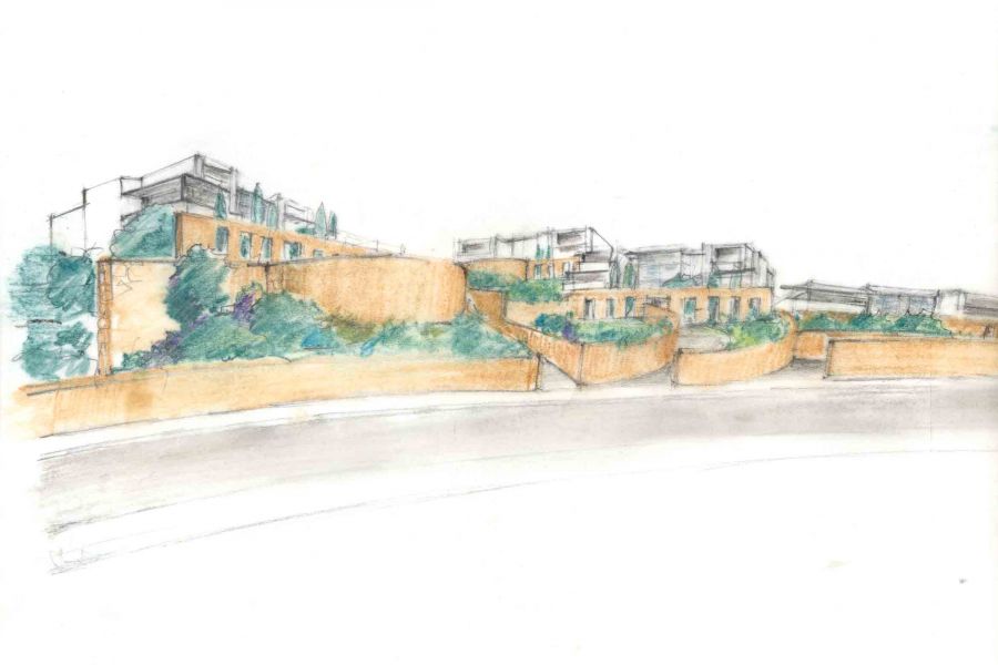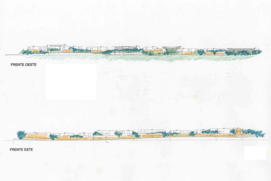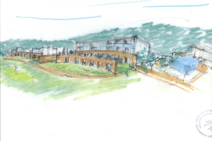Sono stati disegnati 70.000 m2. tra residenze, club- houses , strade e servizi, ruotanti attorno al campo di 18 buche ed al campo di buche corte. L’uniformita’ dell’intero complesso viene salvata dalla continuita’ dei muri di pietra locale, che come un biscione corrono lungo tutto lo sviluppo delle costruzioni. Con : Elisabetta Vallania e Silvia Soro.